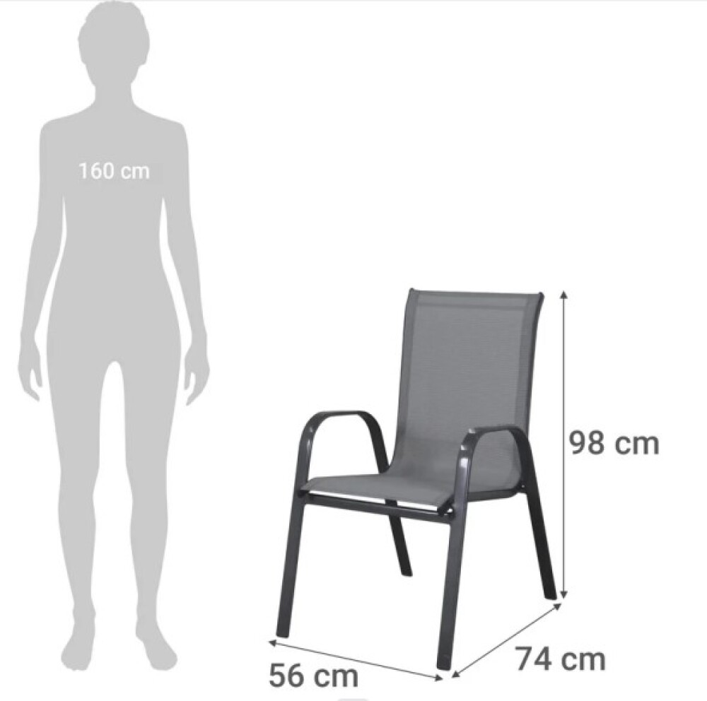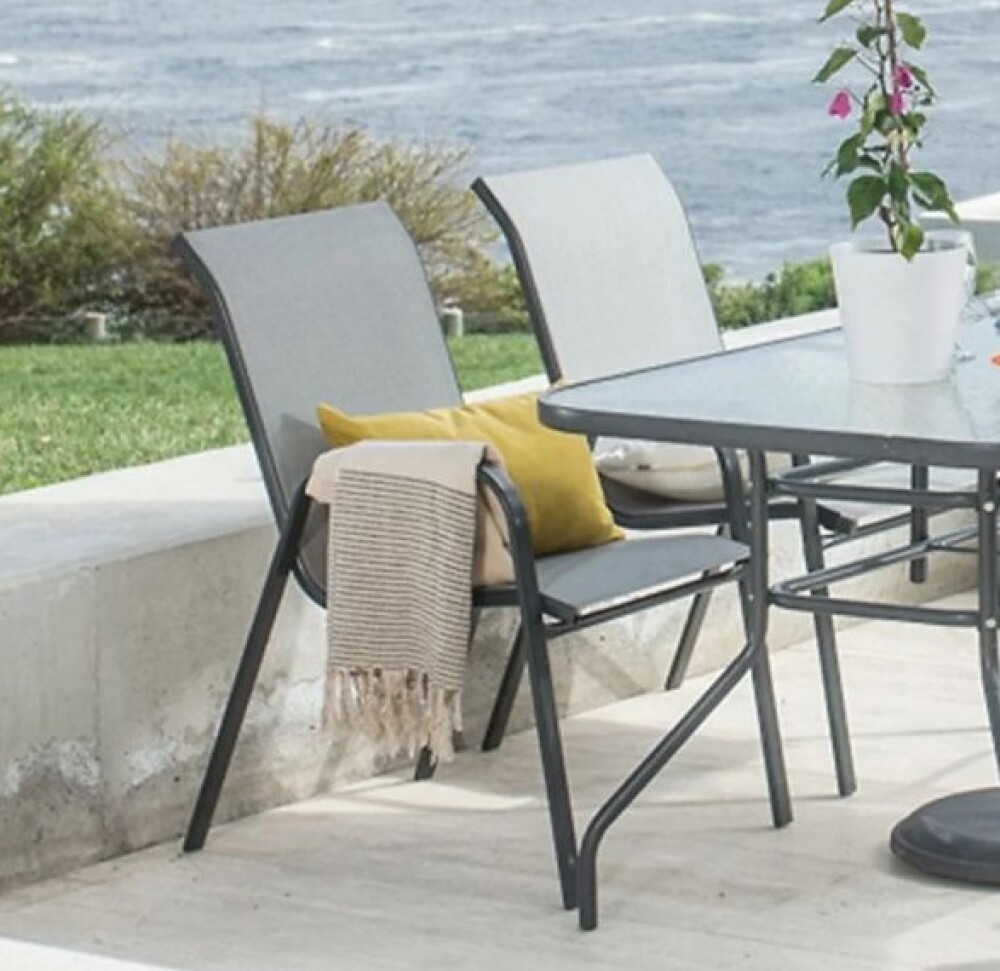 De estilo industrial y en color gris, esta silla se integra con facilidad en diferentes ambientes al aire libre. Cuenta con apoyabrazos ergonómicos que mejoran la experiencia de descanso y, gracias a su diseño apilable, permite optimizar el espacio al momento de guardarlas.