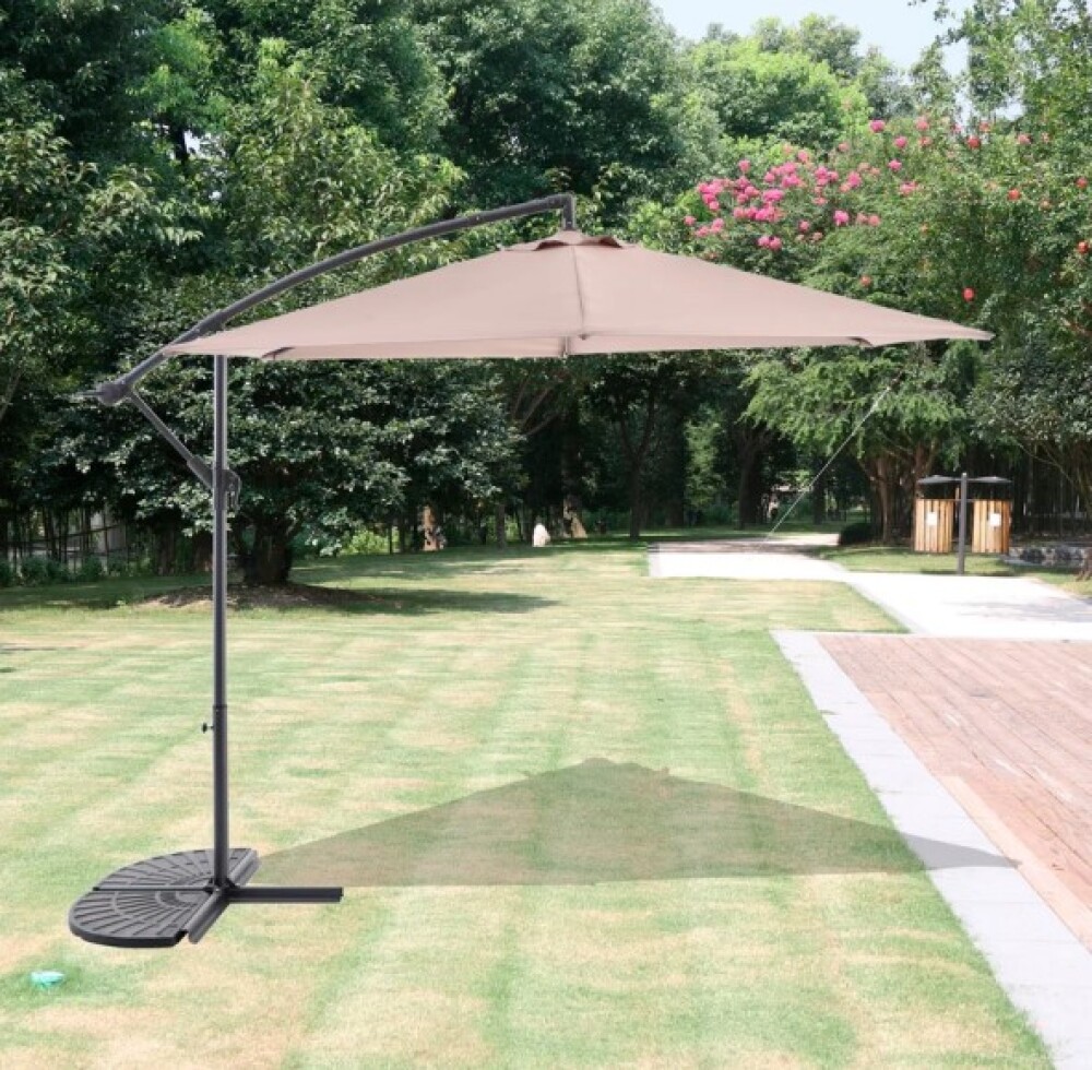 Además, su estructura lateral optimiza el espacio debajo del parasol, permitiendo colocar mesas o sillones sin interferencias del mástil central.